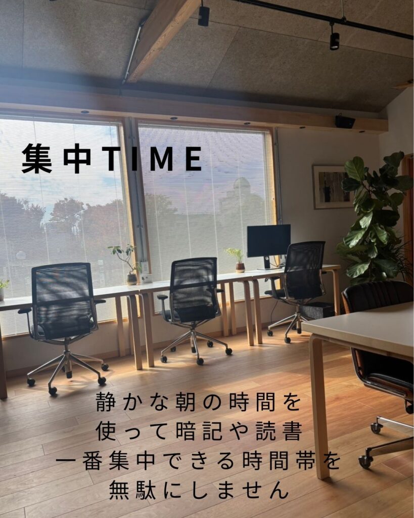 静かな朝の時間を使って、暗記や読書。