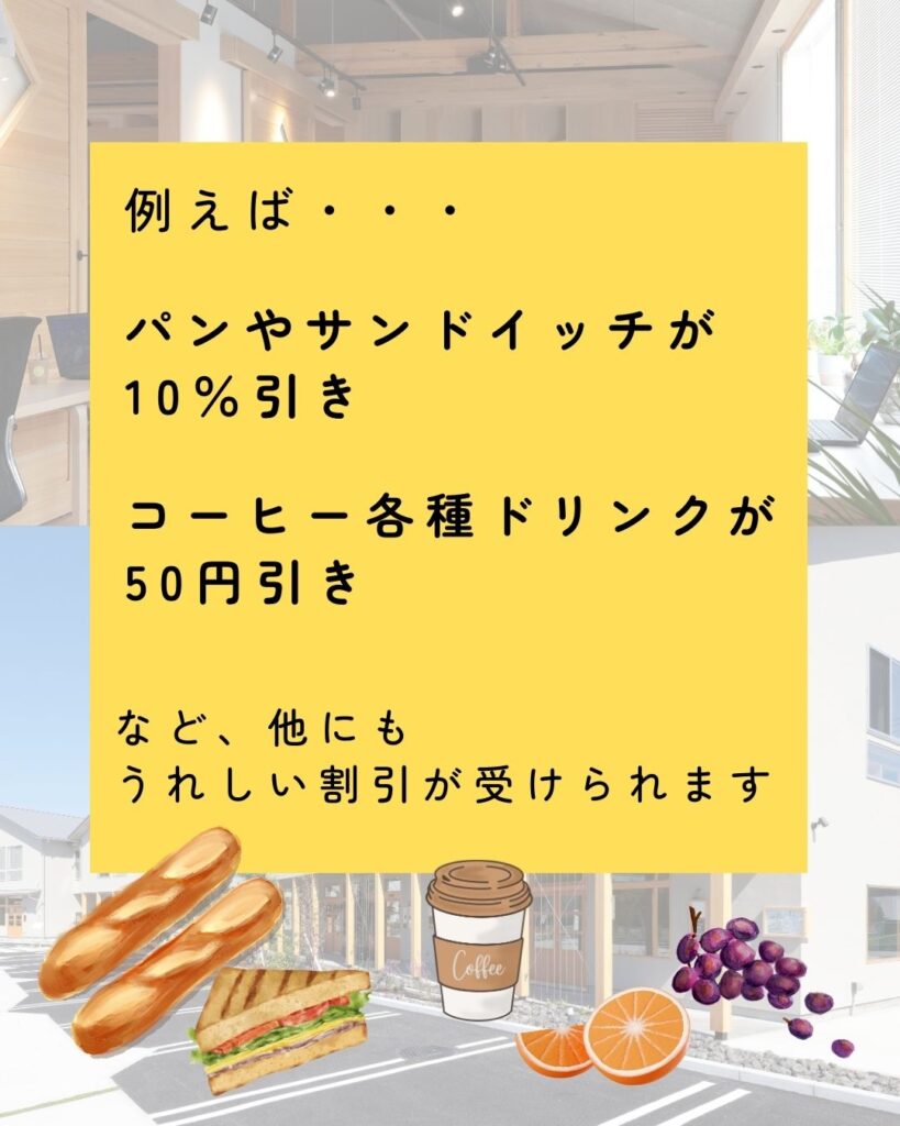 ・コーヒーや各種ドリンクが50円引きなど☕
